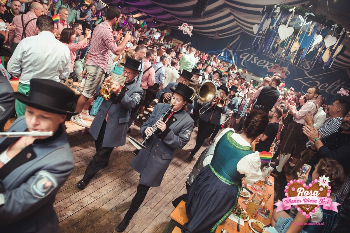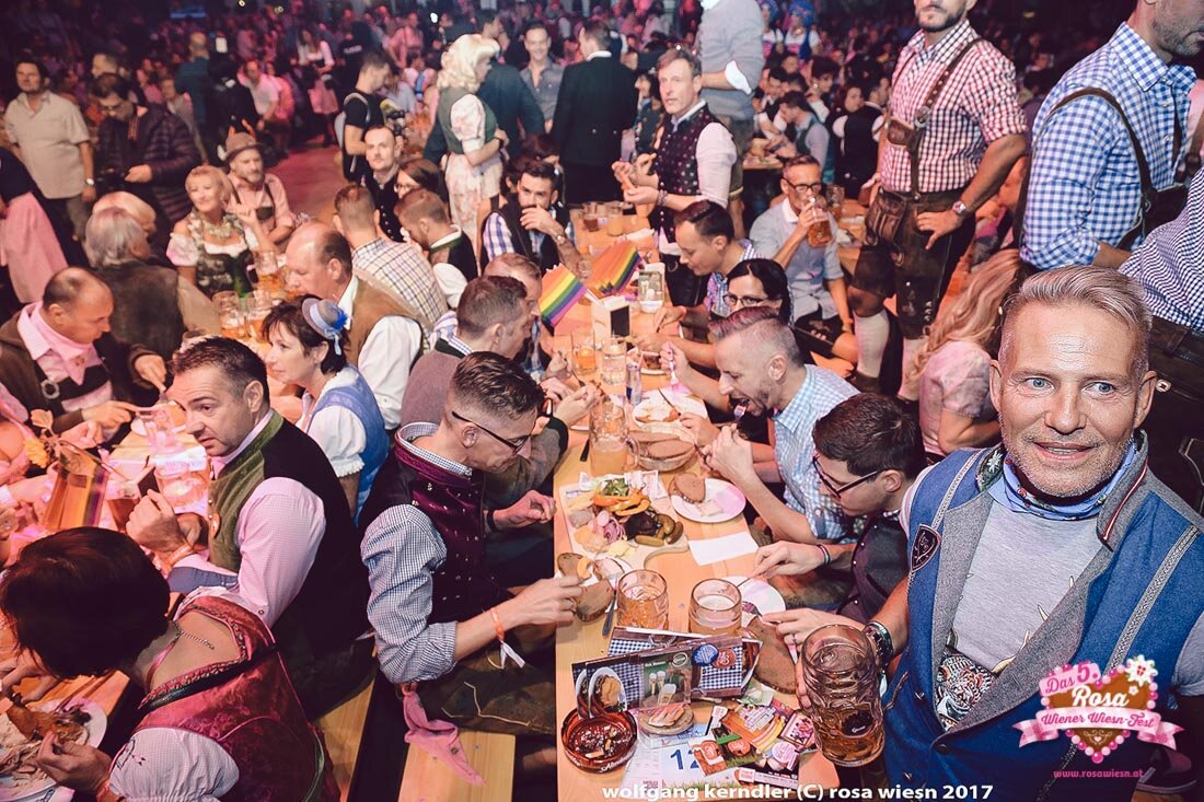 Rosa Winter Wiesn – aber ohne dicke Janker und Wollsocken, denn wir feiern im ersten Indoor-Wiesn-Zelt in der Messehalle A3! Seit 2013 gehört unsere Rosa Wiener Wiesn und auch der Rosa Wiesn Frühschoppen zum Fixpunkt des LGBTIQ-Partykalenders.